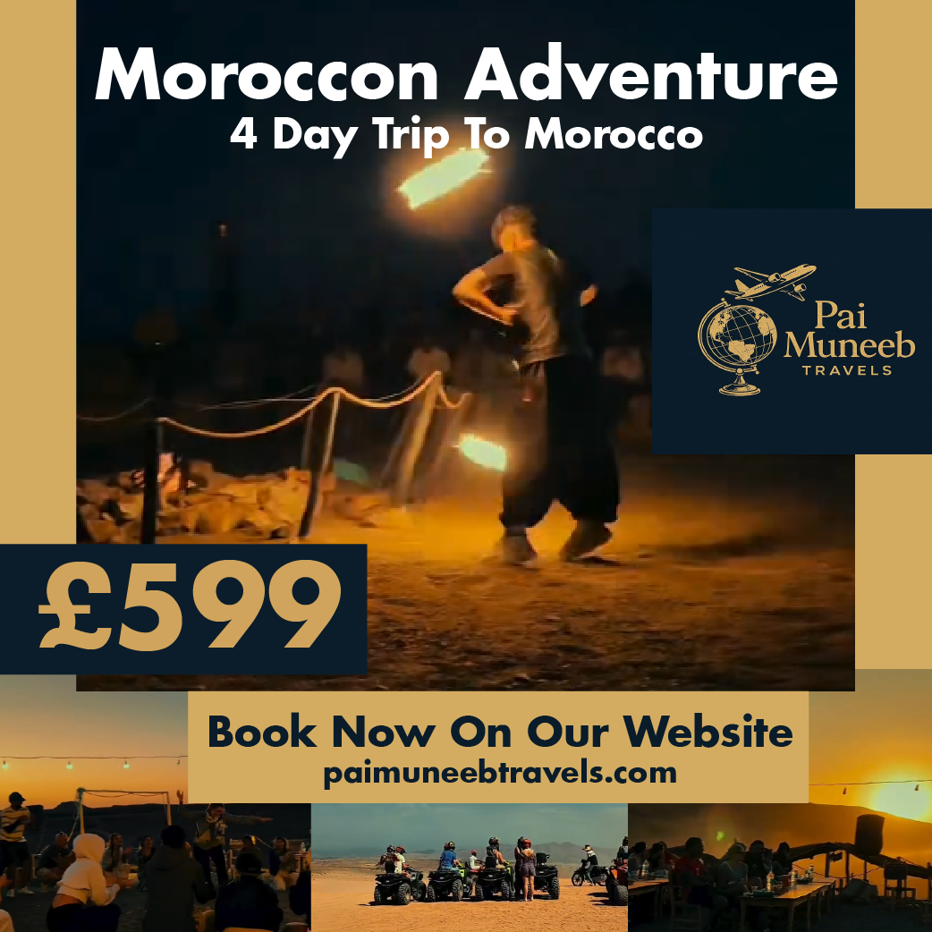 Join us for an unforgettable 4-day journey through the heart of Morocco, from 18th to 21st December, for just £599 per person. This carefully curated trip is perfect for those seeking a mix of culture, adventure, and relaxation.